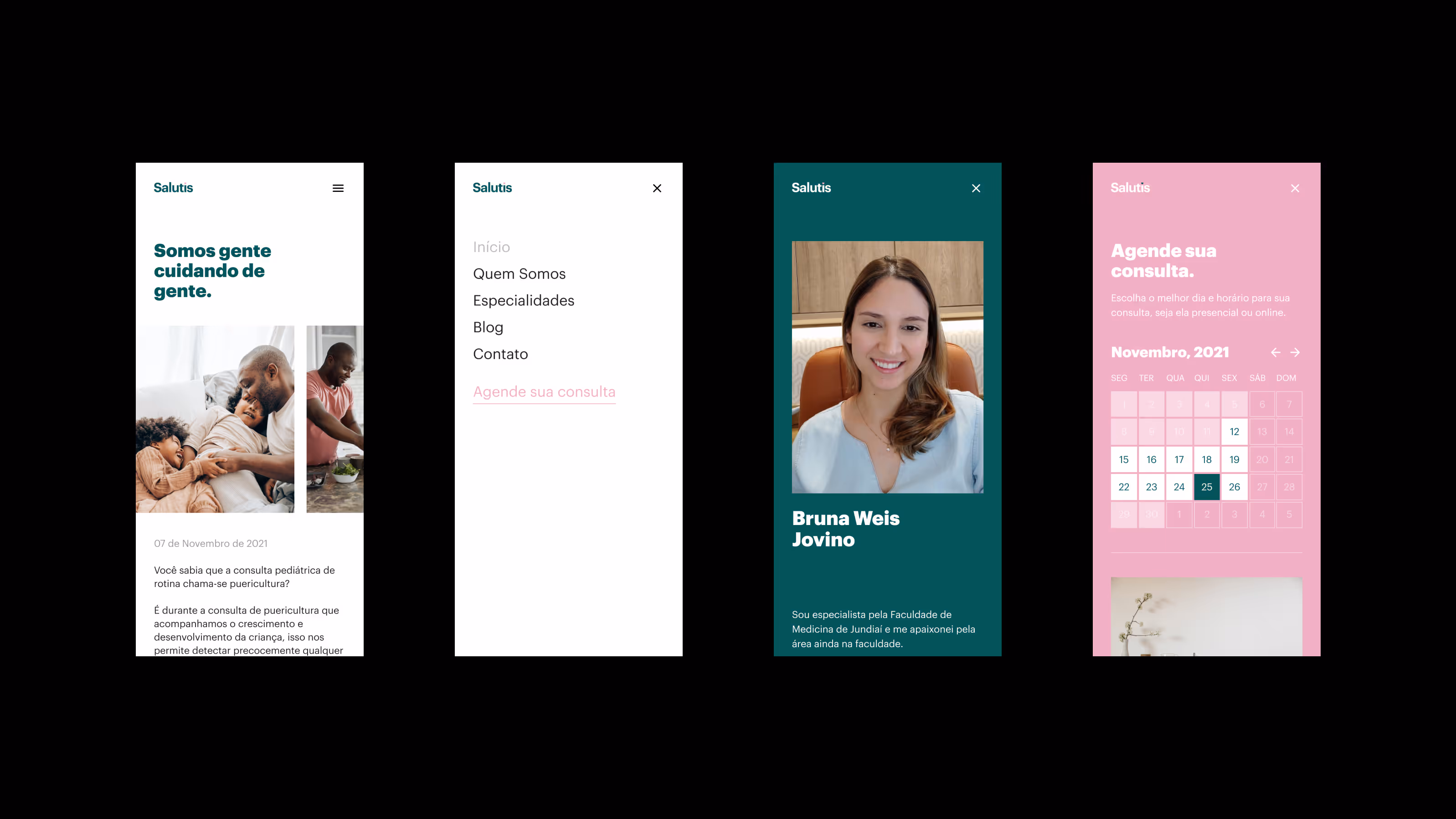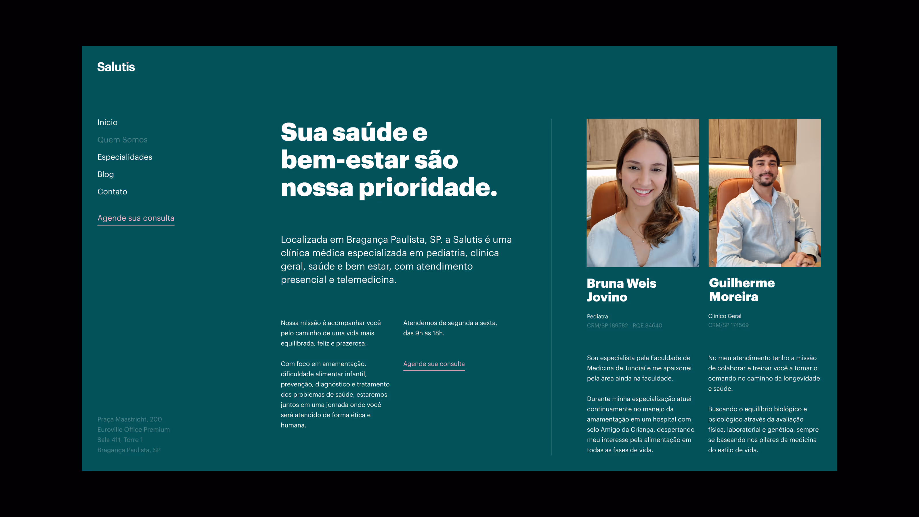 Salutis é uma clínica de saúde especializada em pediatria e bem-estar, liderada pela Dra. Bruna Jovino e pelo Dr. Guilherme Moreira. Fui convidado para criar a marca, identidade visual e o site responsivo. Com forte foco em atendimento humanizado, o objetivo foi criar um design acolhedor e caloroso que se diferenciasse da estética tradicional comumente vista na indústria de saúde.