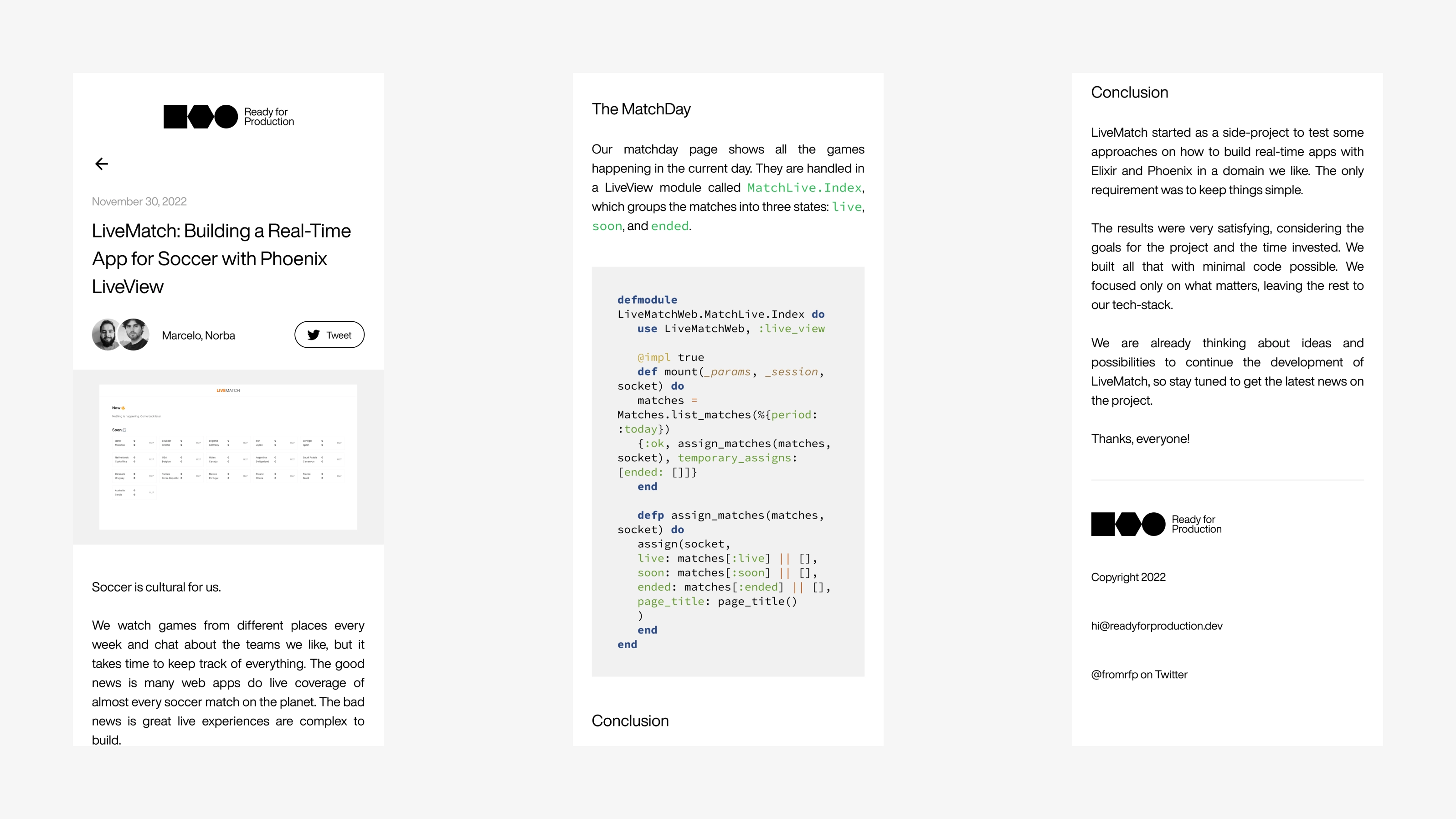 Ready for Production é um projeto paralelo, um power trio composto por um designer, um dev front-end e um dev back-end que criam e compartilham ferramentas, projetos e ideias que estão verdadeiramente prontos para produção. Fui responsável pela criação da marca, identidade visual, materiais promocionais e pelo design do site.
